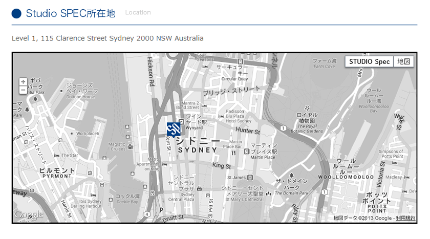 ちなみに商用利用の際の例としまして、Studio SPECの会社概要ページに埋めているGoogleマップです。