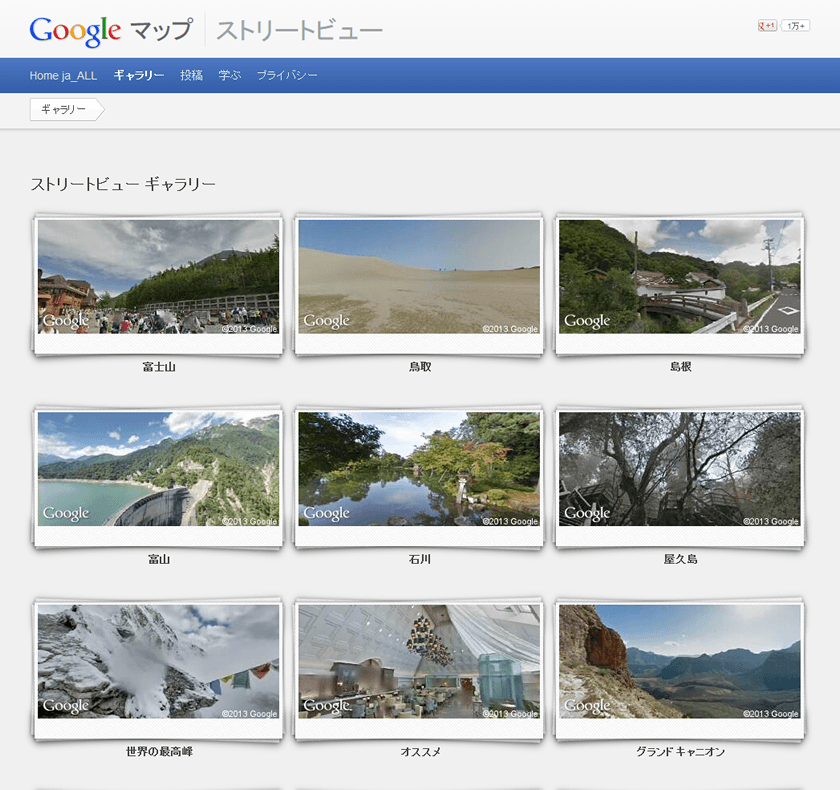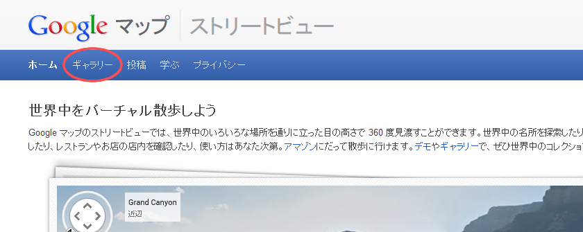 このトップページ上部にあるナビゲーションのギャラリーボタンをクリックすると、ストリートビューのギャラリーに移動できます。