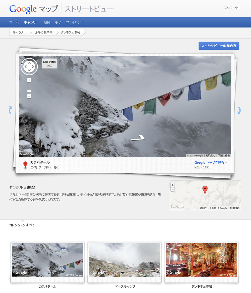 このストリートビューのページ。言語切り替えも簡単に出来ます。言語を切り替えるとギャラリーの内容も変わるので面白いです。