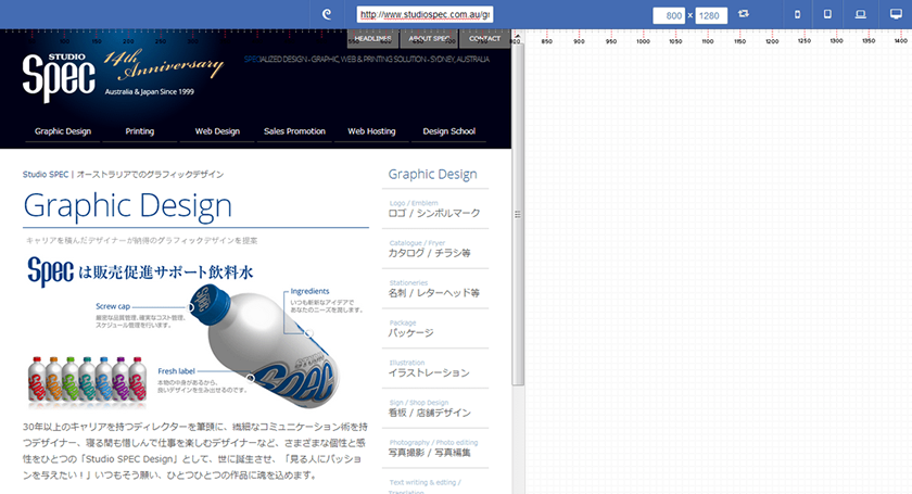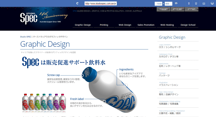 トップページは左側にナビゲーションが無く解り辛いので、グラフィックデザインサービスのページを例としたいと思います。